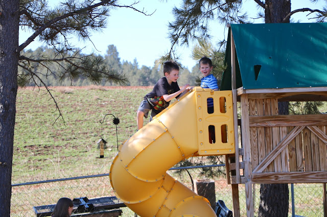 With the warmer weather, the kids were spending copious amounts of time outside. Yay, mommy loves that! One day I looked out there to discover Ezra climbing up the outside of the slide for the first time.